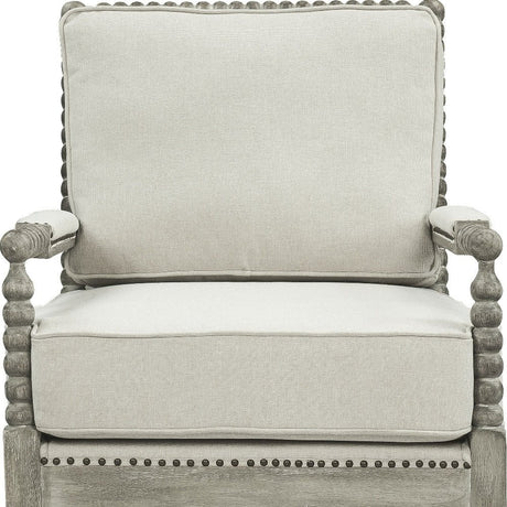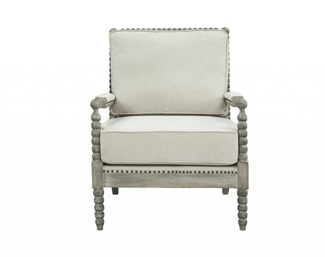 43" Ivory and Pearl Fabric Striped Arm Chair And Toss Pillows