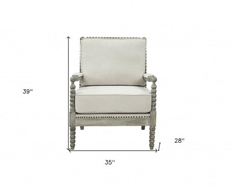 44" Sand Linen Upholstered Swivel Round Accent Chair And Toss Pillows