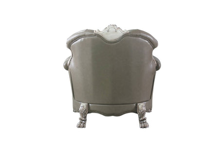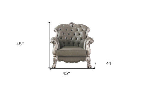 45" Ivory and Gold Faux Leather Tufted Arm Chair And Toss Pillows