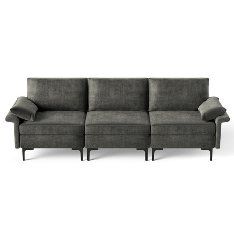 Modular 3-Seat Sofa Couch with Socket USB Ports and Side Storage Pocket-Light Gray