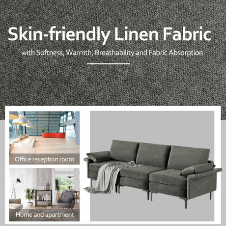 Large 3-Seat Sofa Sectional with Metal Legs for 3-4 people-Gray