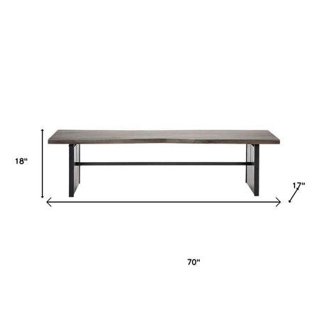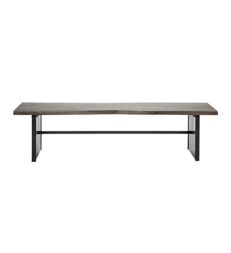 Rectangular Indian Mango Woodbrown Tone Finish W Metal Cladding On The Base Dining Bench