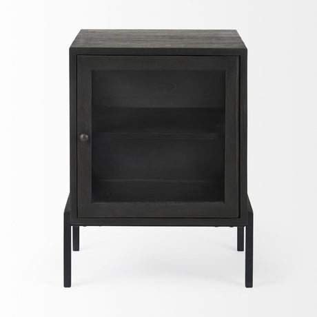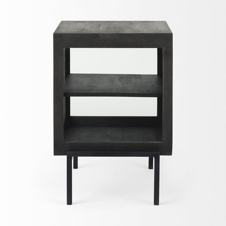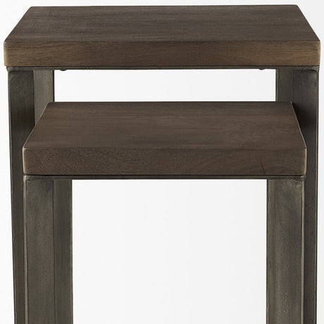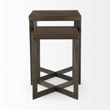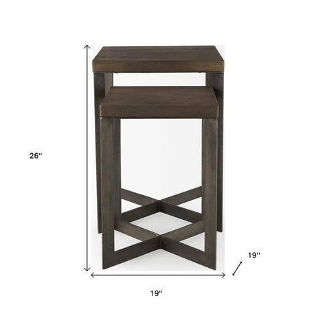 Set of Two Brown Solid Wood and Metal Square Cross Legs Nested Tables