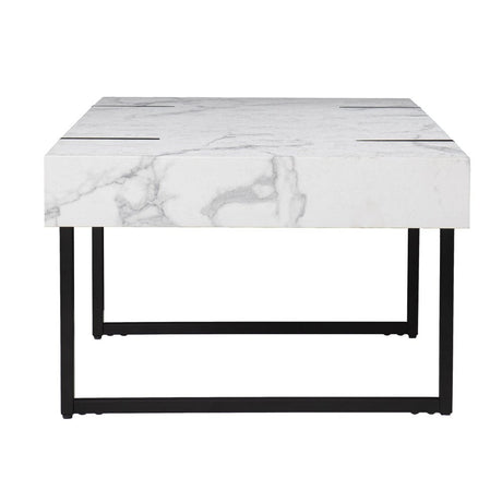 43" White And Black Faux Marble And Metal With Iron Coffee Table