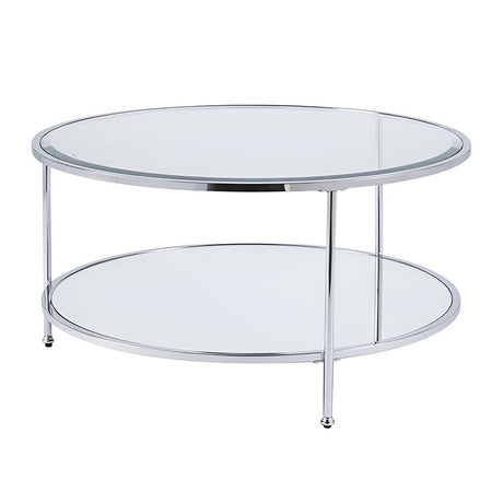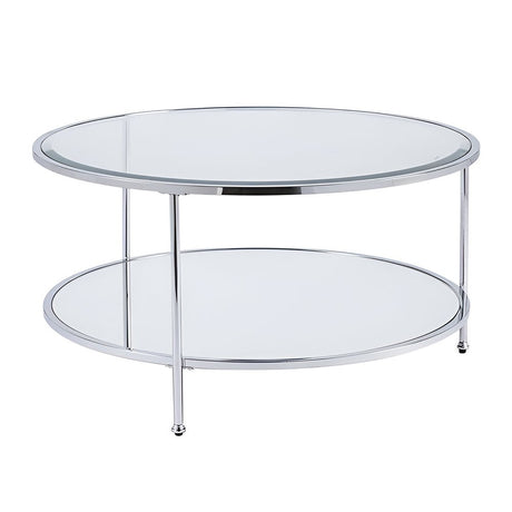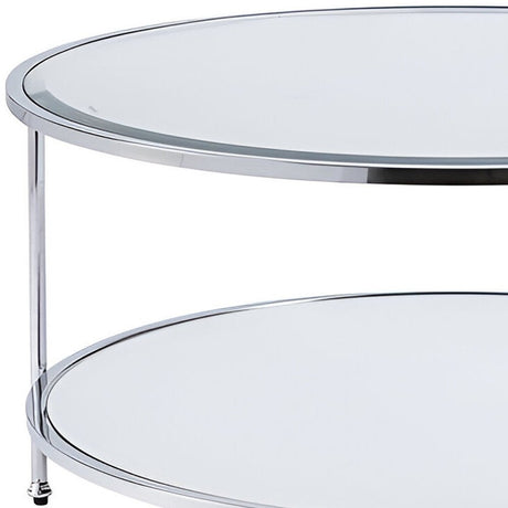 34" Chrome Glass And Metal Round Mirrored Coffee Table