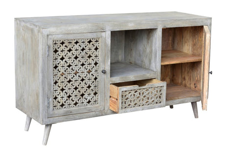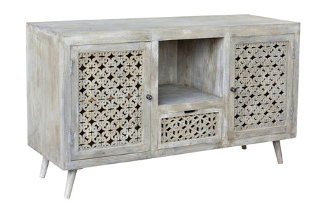 55" Gray Solid Wood Cabinet Enclosed Storage Worn TV Stand