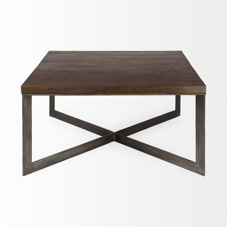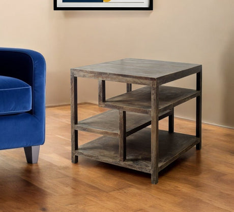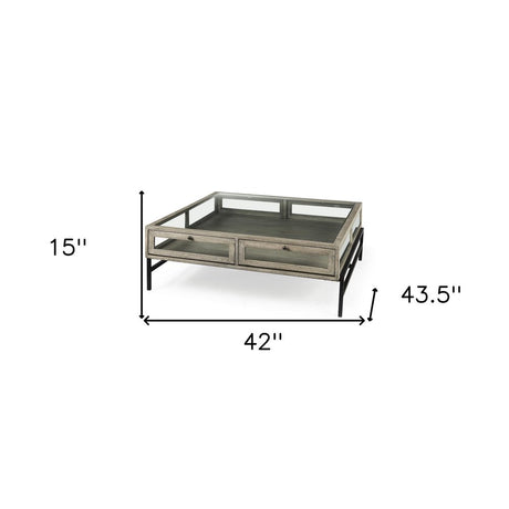 42" Gray and Black Glass and Metal Square Coffee Table With Shelf
