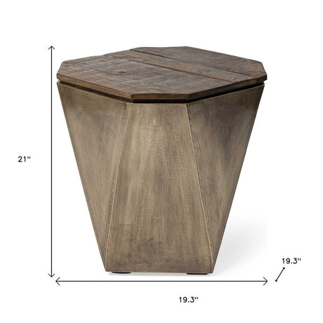 20" Brown Distressed Solid Wood Hexagonal Top Table