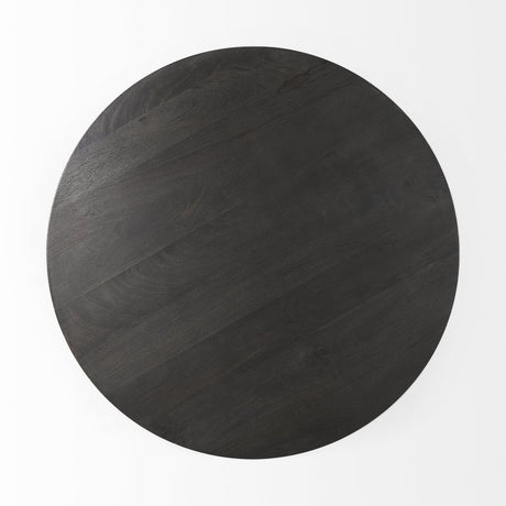 32" Dark Brown and Black Solid Wood and Iron Round Pedestal Coffee Table