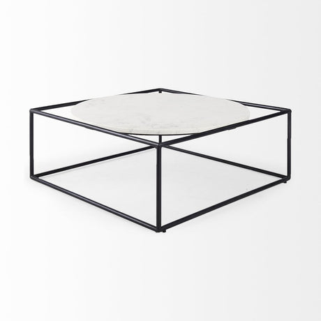 36" White and Black Genuine Marble and Metal Square Frame Coffee Table
