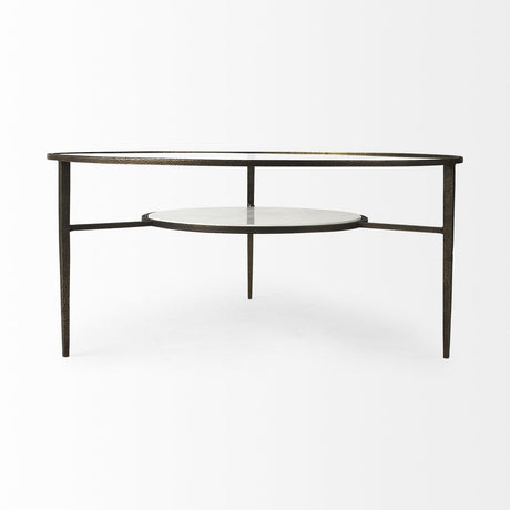 36" Clear and Bronze Glass and Metal Round Coffee Table With Shelf