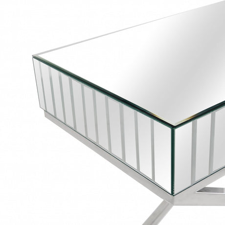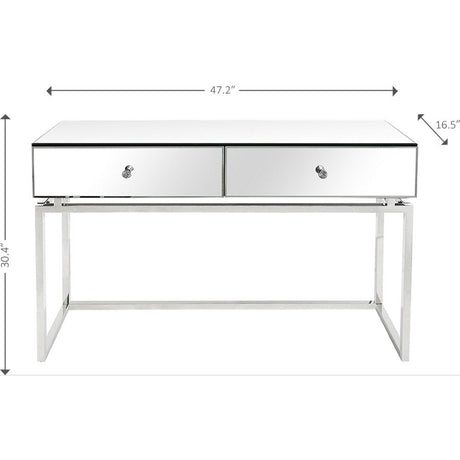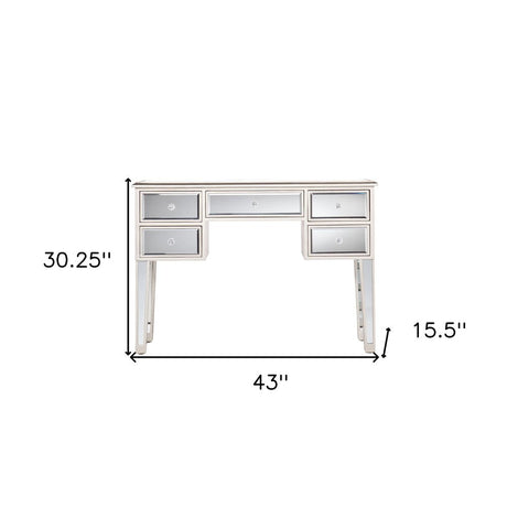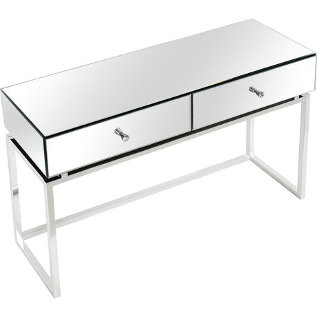 47" Silver Mirrored Glass Frame Console Table And Drawers