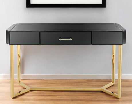 47" Black and Gold Mirrored Glass Frame Console Table And Drawers