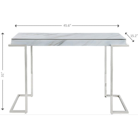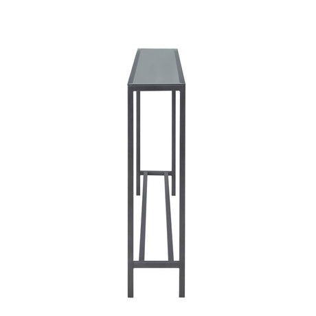 56" Silver and Gunmetal Mirrored Glass Console Table