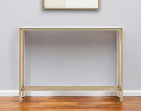 48" Clear Black and Champagne Glass Floor Shelf Console Table With Shelf