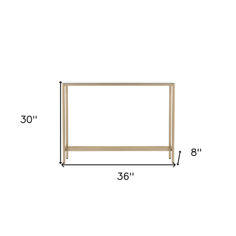 56" Clear and Gold Glass Mirrored Frame Console Table With Shelves