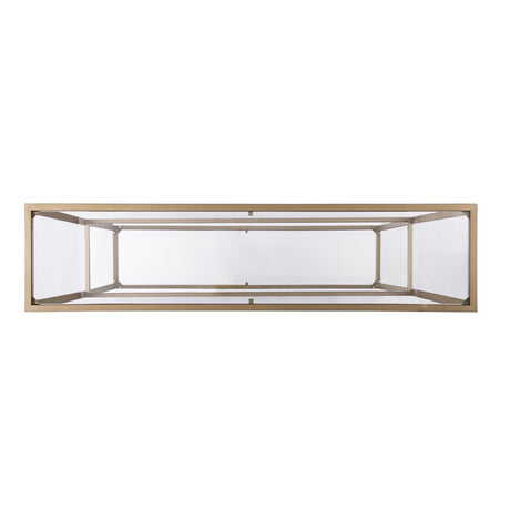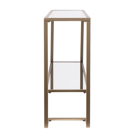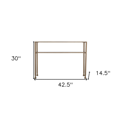 52" Clear and Gold Glass Mirrored Sled Console Table With Shelves