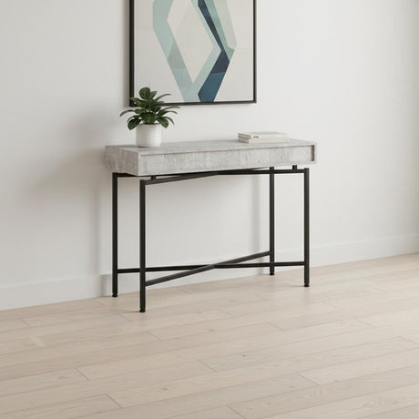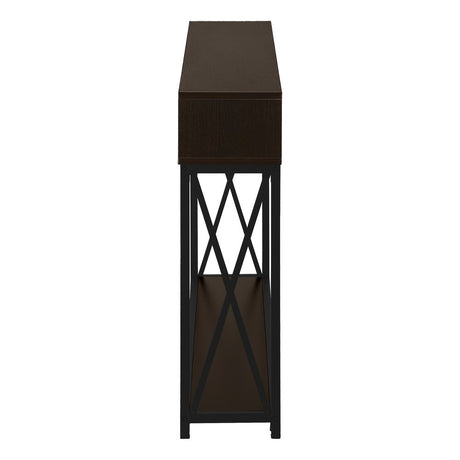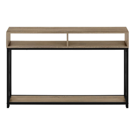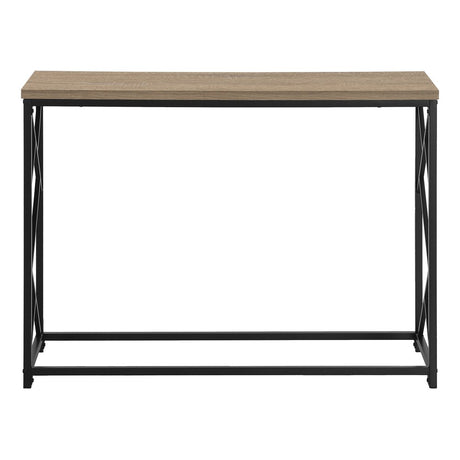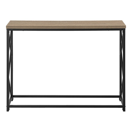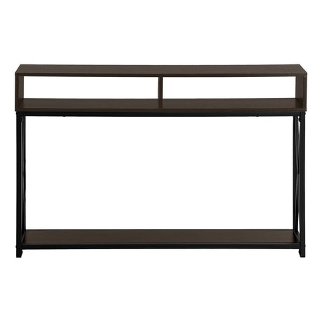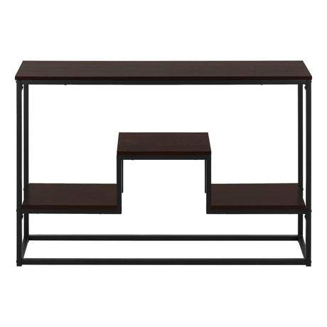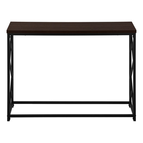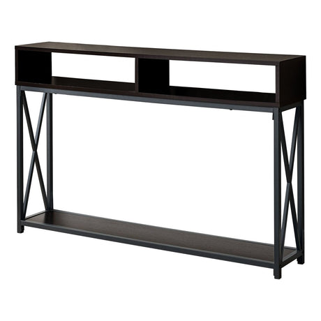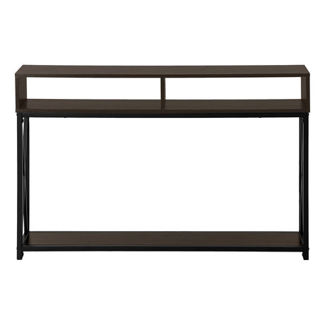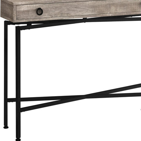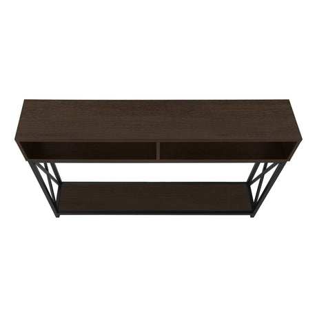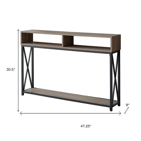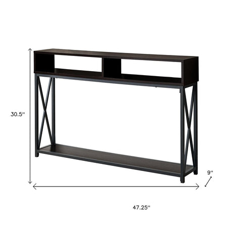 66" Brown and Black Solid Wood and Iron Abstract Base Console Table
