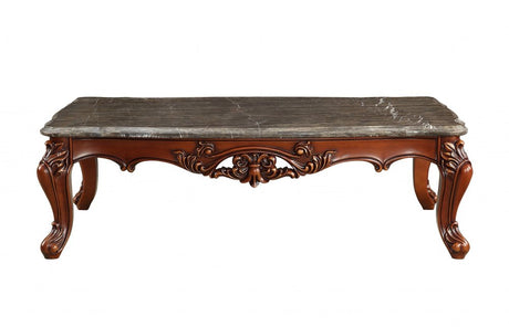 36" Gray and Brown Genuine Marble And Solid Wood Coffee Table