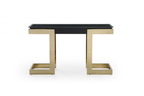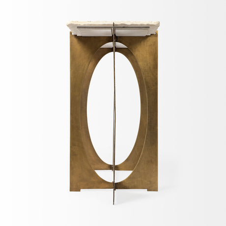 59" White and Gold Genuine Marble and Metal Geo Base Console Table
