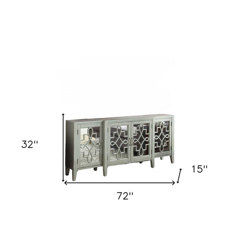 72" Black And Silver Mirrored Solid Wood Distressed Solid Console Table