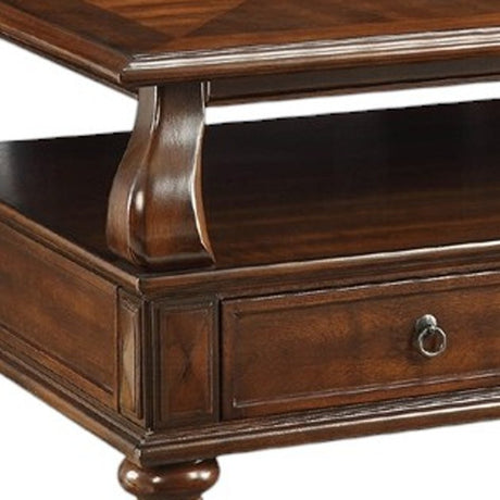50" Dark Brown Solid Wood Coffee Table With Two Drawers And Shelf