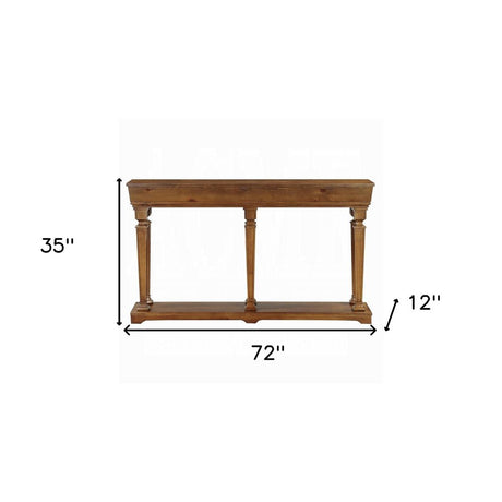 72" Oak Solid and Manufactured Wood Floor Shelf Console Table With Shelves