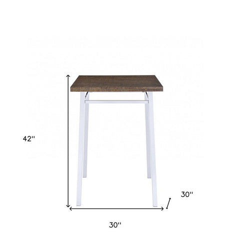 30" Brown and White Metal and Solid Wood Square Bar Table