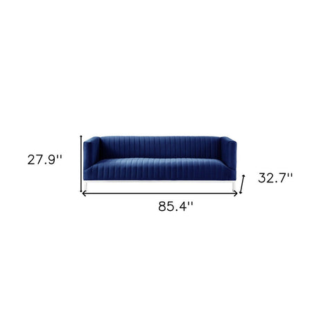 69" Blue Velvet Sofa And Toss Pillows With Dark Brown Legs