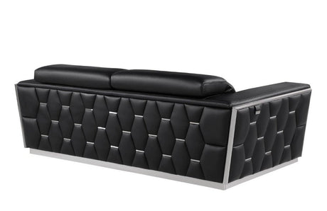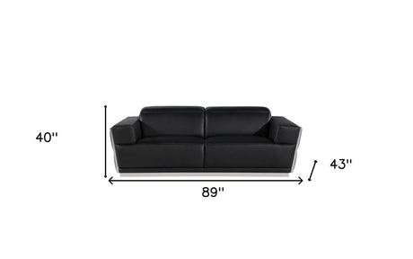 84" Green and White Faux Leather Geometric Sofa With Black Legs