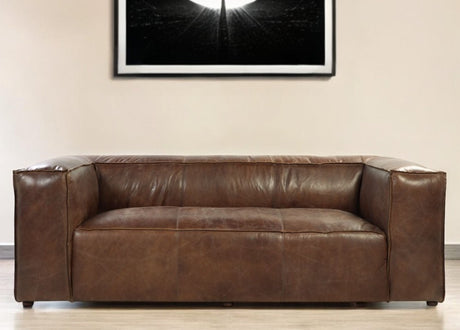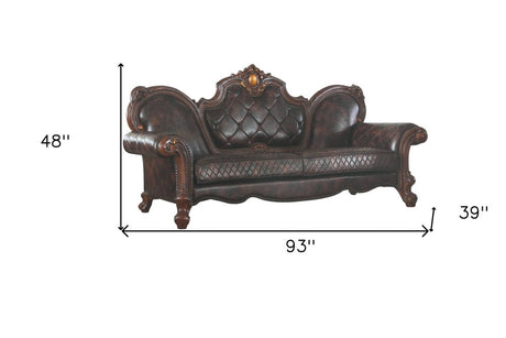 93" Dark Brown Faux Leather Sofa And Toss Pillows