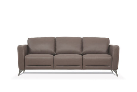 96" Bone Faux Leather Sofa And Toss Pillows With White Legs