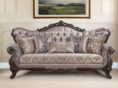 92" Champagne Imitation Silk Damask Sofa And Toss Pillows