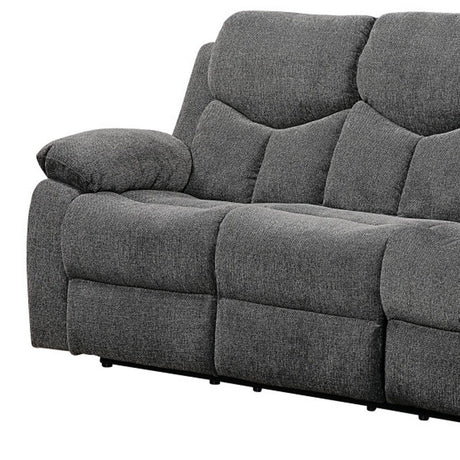 87" Gray Velvet Reclining USB Sofa With Black Legs