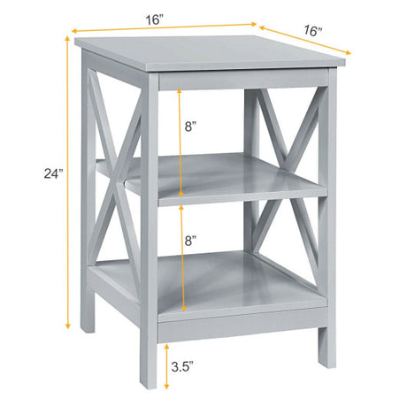 3-Tier Nightstand End Table with X Design Storage -Gray