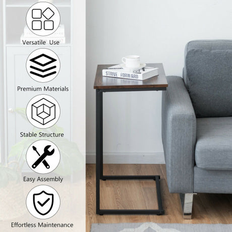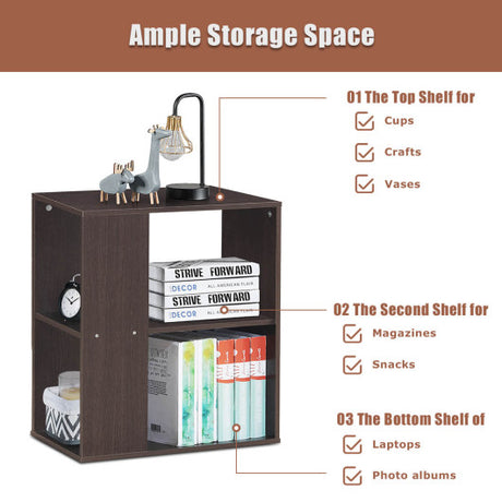 360° Rotating Sofa Side Table with Storage Shelves and Wheels-Walnut