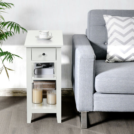 3-Tier Nightstand Bedside Table Sofa Side with Double Shelves Drawer-White