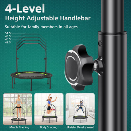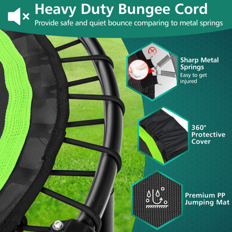 40 Inch Foldable Fitness Rebounder with Resistance Bands Adjustable Home-Green