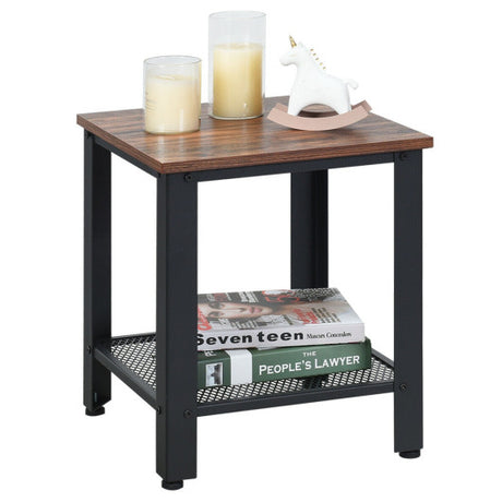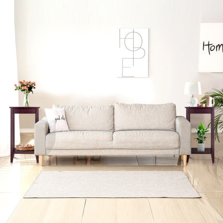 2 Pieces Bamboo Nightstand Sofa Table with Storage Shelf