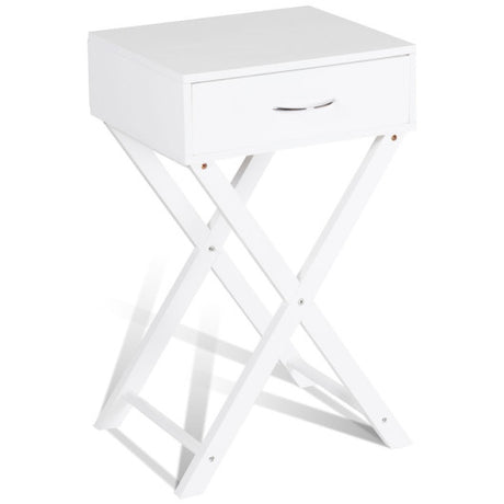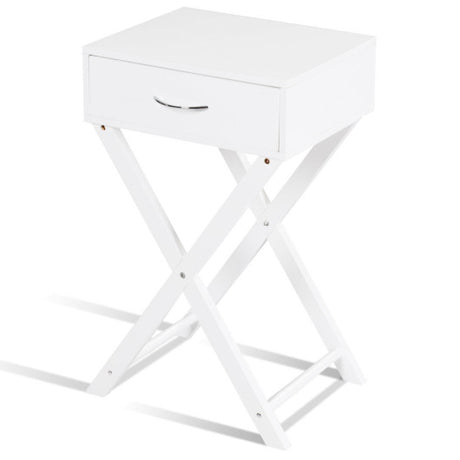 Design Sofa Side Table with X-Shape Drawer for Living Room Bedroom-White