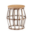 Show off your exquisite taste with this 18" silver and natural manufactured wood round end table. A silver iron open barrel shape frame is finished off with a natural brown manufactured wood top that is the epitome of quality construction and design. Side tables are a great way to flank your sofa, use as an accent next to your favorite chair, or can even be used bedside. This versatile table is a great accent for most any room. 17.5" H x 15.25" W x 15.25" D