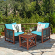 3 Pieces Acacia Wood Patio Furniture Set with Coffee Table-Turquoise - Turquoise is backordered and will ship as soon as it is back in stock.