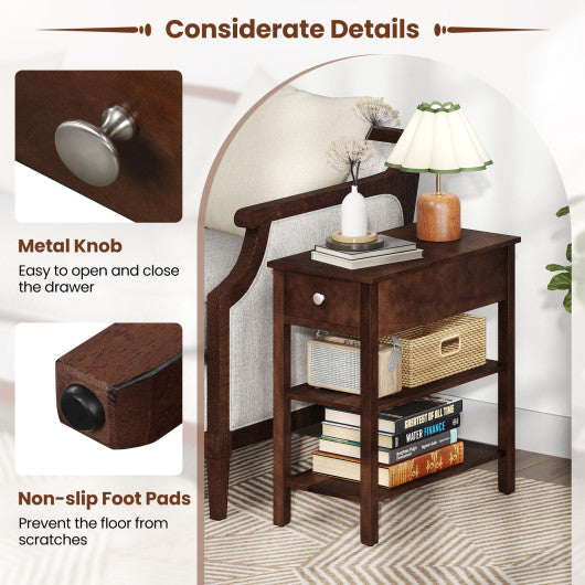 3-Tier Narrow End Table with Drawer and Storage Shelves-Walnut