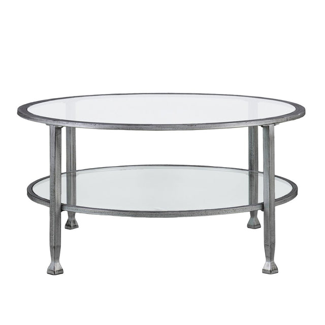 36" Silver Glass And Metal Round Coffee Table