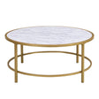 36" White And Gold Faux Marble And Metal Round Coffee Table