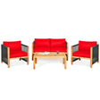 4 Pieces Acacia Wood Outdoor Patio Furniture Set with Cushions-Red - Red is backordered and will ship as soon as it is back in stock.