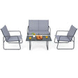 4 Pieces of Metal Patio Furniture Chat Set with Tempered Glass Coffee Table