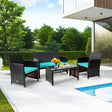 4 Pieces Patio Rattan Cushioned Furniture Set-Turquoise