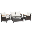 4 Pieces Patio Rattan Furniture Set with Cushioned Sofa and Storage Table-White