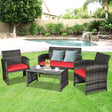 4 Pieces Patio Rattan Furniture Set with Cushions-Red
